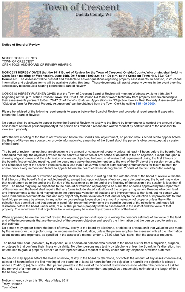 Notice of Board of Review Published May 30, 2017 at 620 × 980 in Notice of Board of Review ← Previous Next →