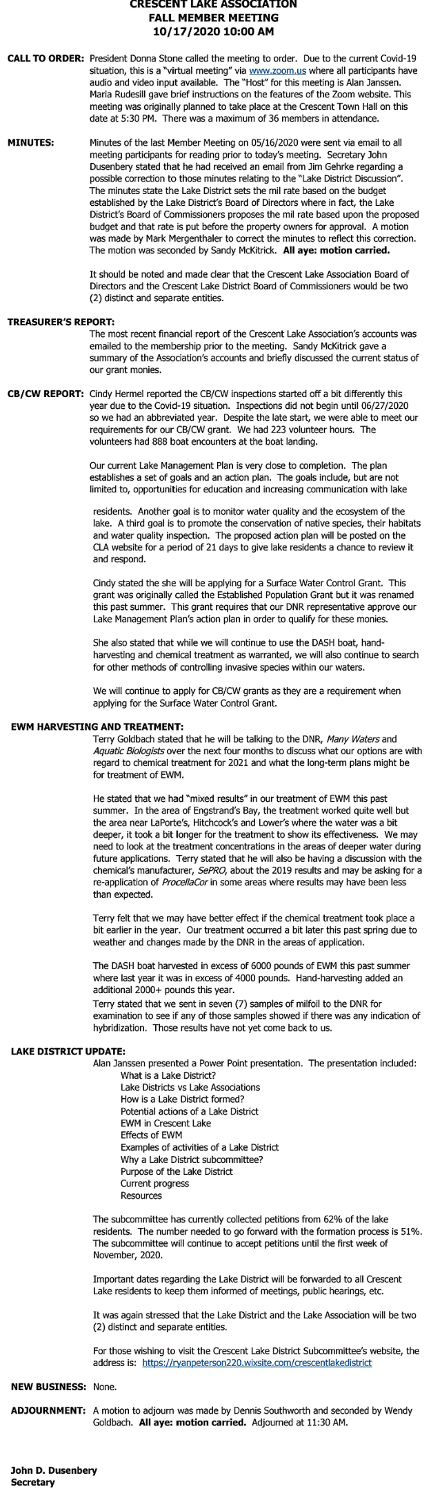 Crescent Lake Ice Out & Over Posted on April 15, 2021 by John Zinda Based upon information from Jim Voborsky, Eileen Ronyak, Darrel Mack, Alan Janssen
