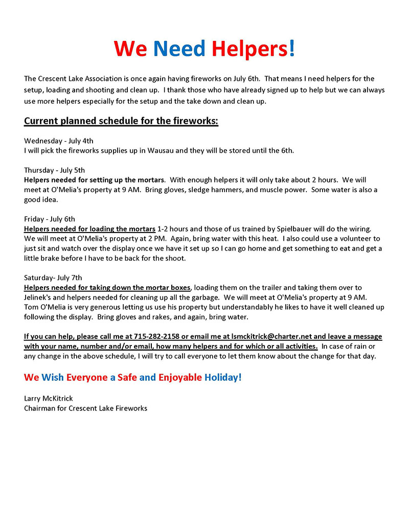 Fireworks Helpers Needed
