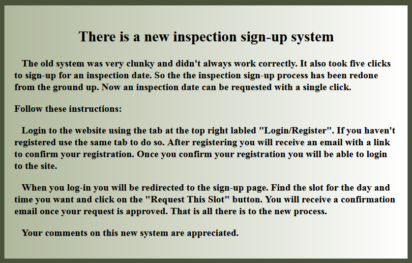 New Boat Inspection Sign-up